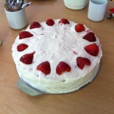 Ist nicht so schwer wie es aussieht und wie ich dachte. Man muss aber darauf achten, dass der Bisquitteig genau richtig ist. Zu klietsch und er lässt sich nicht schneiden. Zu durch und die Torte wird hart.